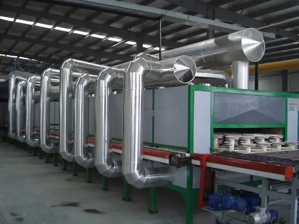 c. Tungku roller suhu tinggi; 1300-1350 °C untuk porselen sehari-hari, sekitar 1350 °C untuk ferrit, dan sekitar 1600 °C untuk substrat keramik alumina.